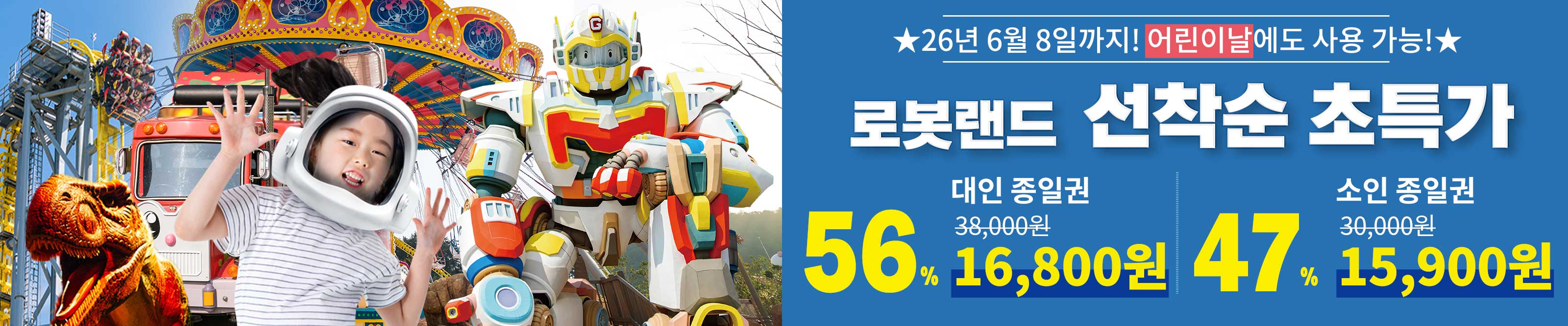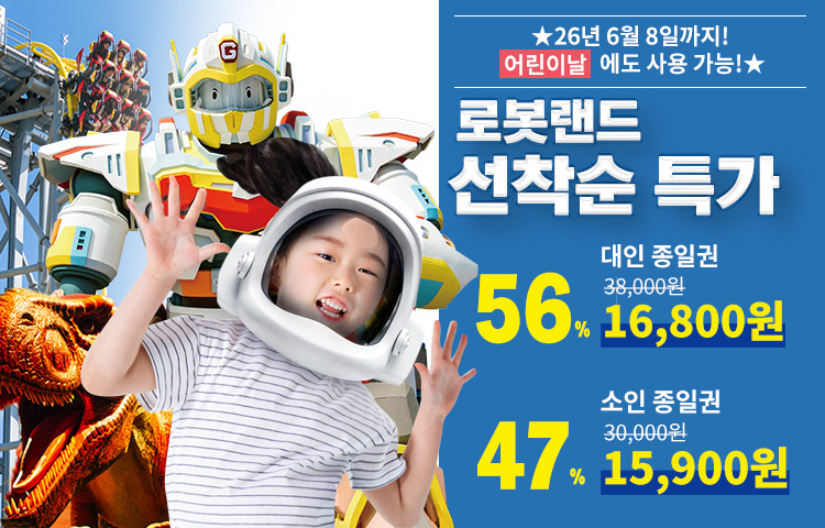 [1★] 짜릿한 어트랙션과 다양한 체험시설을 한번에! 마산 로봇랜드 종일권