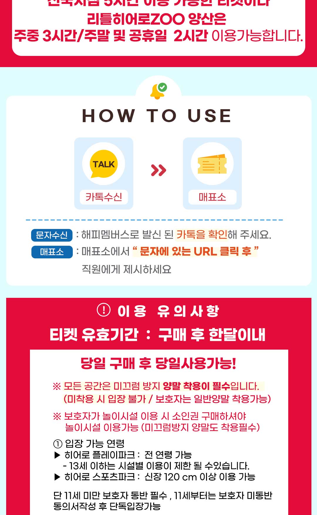 - 부분 사용이 불가한 티켓으로 구매시 이용하는 수량만큼 나누어 구매 부탁드립니다.