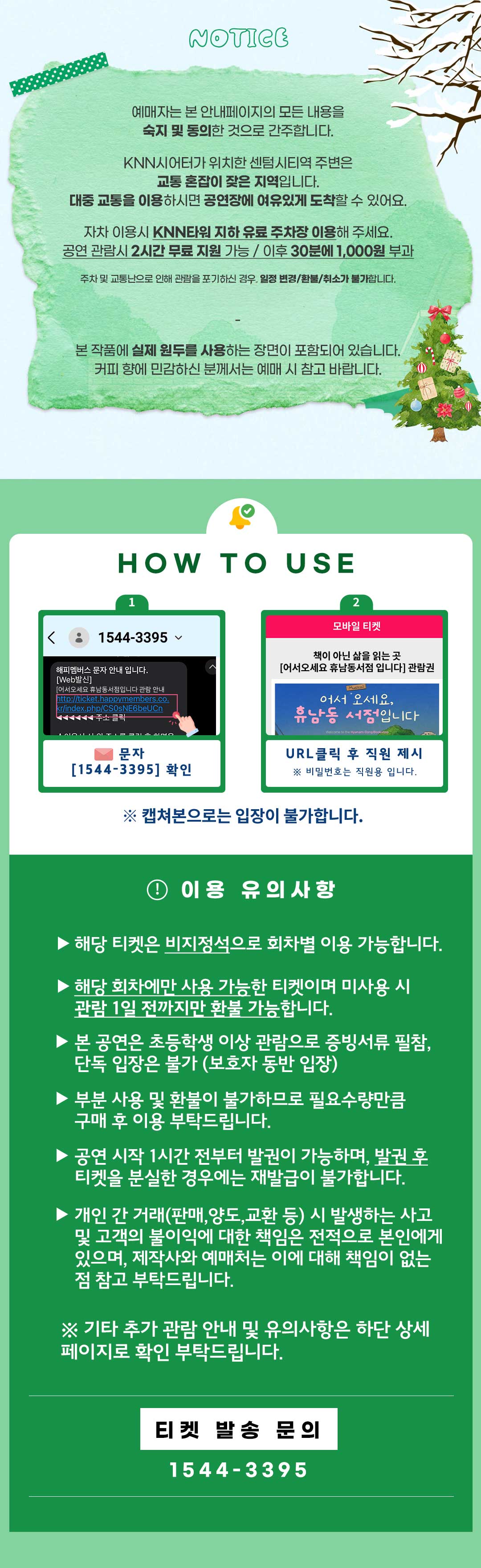 - 관람권 발권 및 부분 발권, 관람일 지난 티켓은 환불 불가