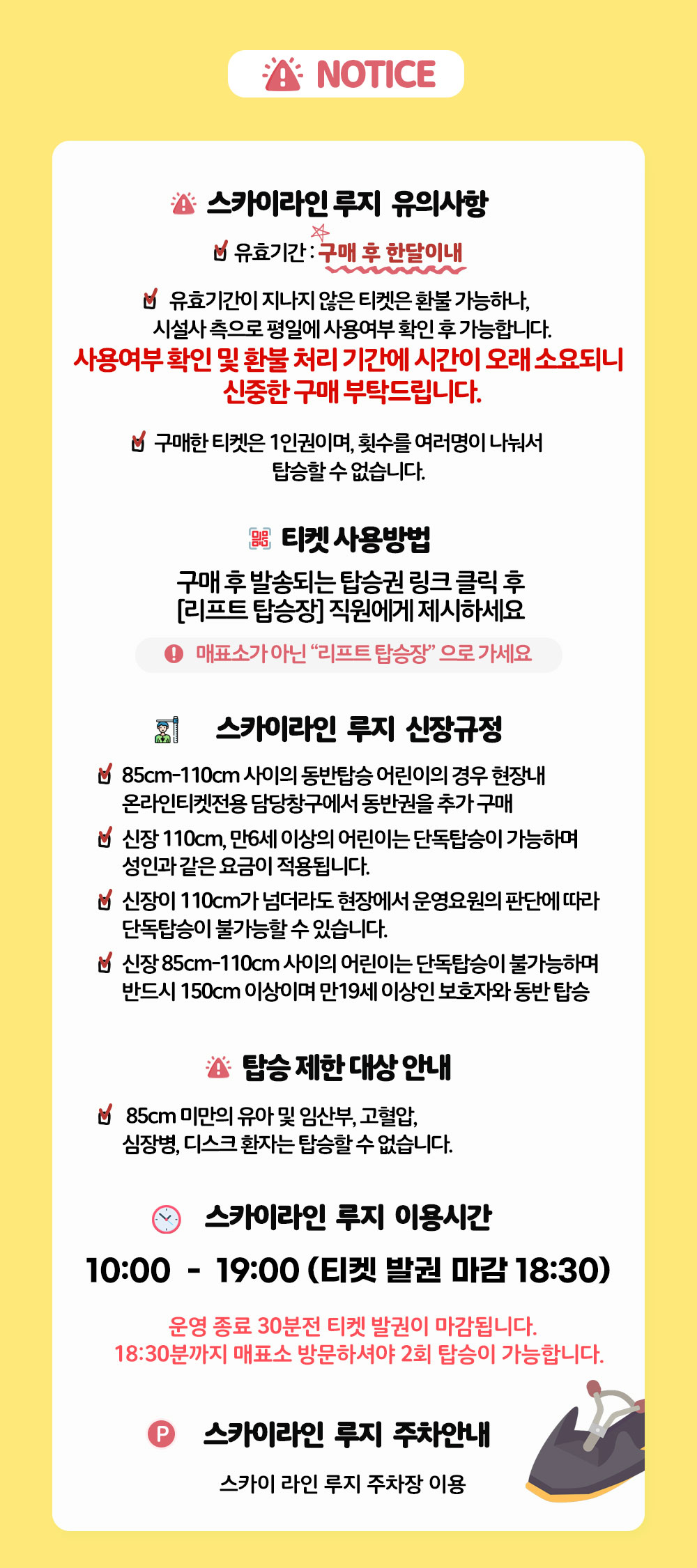 - 유효기간이 지나지 않은 티켓은 환불 가능하나, 시설사 측으로 평일에 사용여부 확인 후 가능합니다.