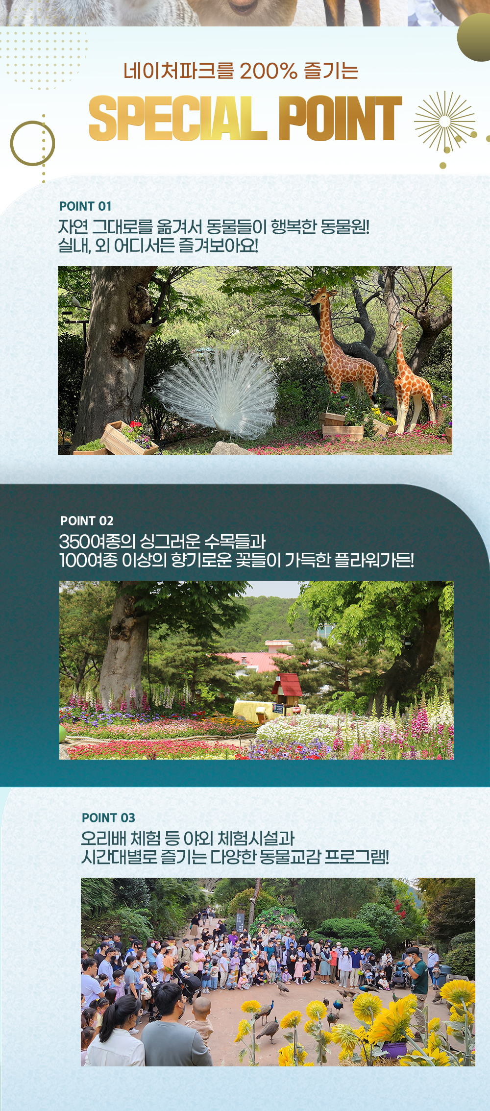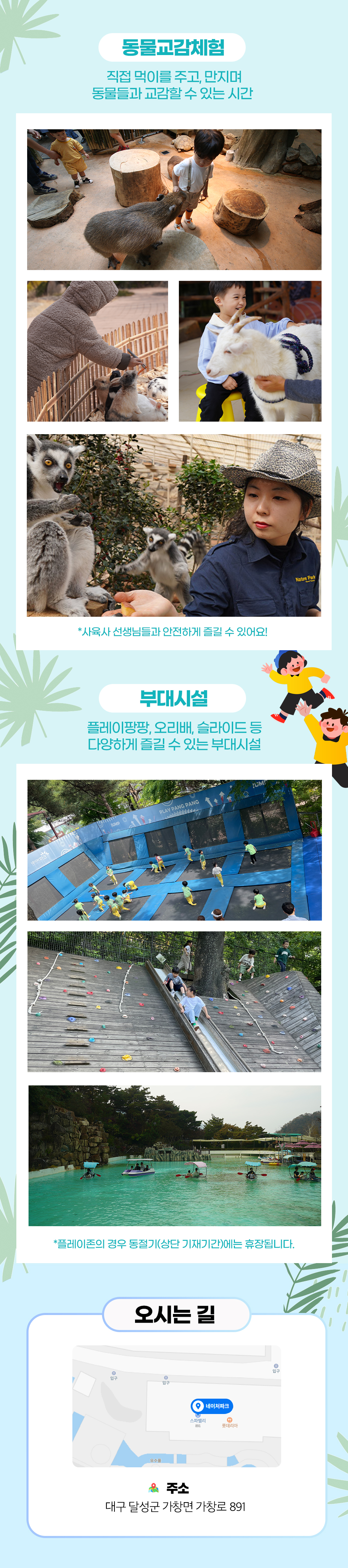 - 동물들의 건강관리를 위해 외부 먹이 반입이 불가합니다.